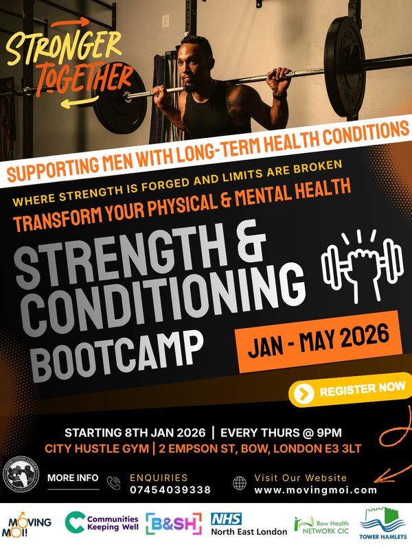 Stronger Together is a targeted Strength & Conditioning programme designed to support men living with long-term health conditions to improve their physical health, mental wellbeing, and overall quality of life in a safe, structured, and supportive environment.
